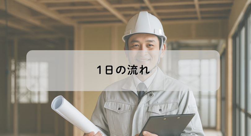 内装施工管理の仕事はデスクワークと現場管理の両方を行うため、日によって動きは異なりますが、一般的な1日の流れは次のようになります。